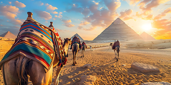  午餐後(hou),乘車(che)前(qian)往遊覽舉世聞名(míng)的(de)【吉薩大(da)金字塔】及(ji)神秘的(de)【斯芬克斯獅身人(ren)面像】漫步于(yu)黃沙萬裏的(de)撒哈拉大(da)沙漠(約120分(fēn)鍾)