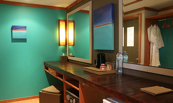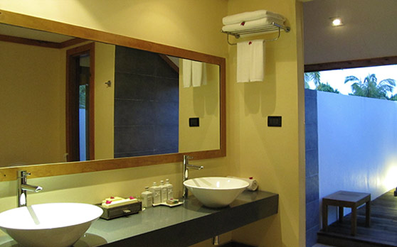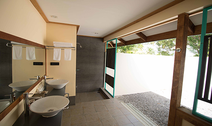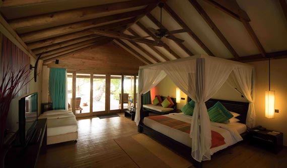 木(mù)質(zhi)陽(yáng)檯(tai)風格的(de)住處,頗具(ju)當地文(wén)化特色。空間開闊的(de)瀉湖(hú)按摩沙灘别墅 (Lagoon Jacuzzi Beach Villas)提供了(le)所有(yǒu)沙灘别墅的(de)設(shè)施。其中(zhong)包括大(da)于(yu)58平方(fang)米的(de)房間,熱帶風格的(de)四柱牀(chuang),私人(ren)按摩浴缸(gang),花(huā)園庭院。别墅造(zao)型設(shè)計(ji)極富(fu)當地文(wén)化特色,現(xian)代(dai)化設(shè)施一(yi)應俱全,長(zhang)廊內(nei)樹木(mù)茂盛(sheng)。在(zai)此,旅客可(kě)飽覽長(zhang)約4公(gōng)裏的(de)海灘及(ji)島上藍色珊瑚礁的(de)壯麗景緻。
